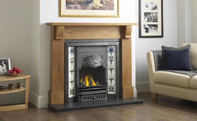 These tiles are 150mm (6″) square and two 5 tile-runs make up a set to fit into a cast-iron fireplace.